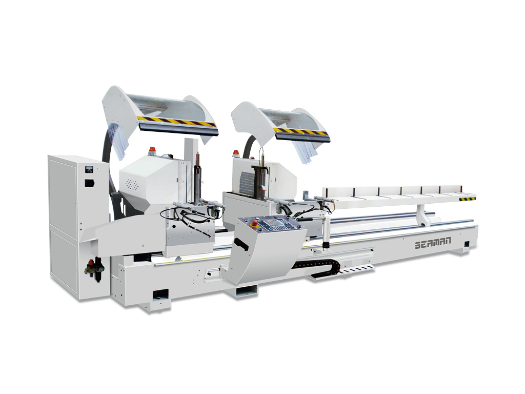 雙頭切割鋸工件雙切長(zhǎng)度:鋸切長(zhǎng)度由數(shù)控系統(tǒng)控制,設(shè)定型材長(zhǎng)度,按下執(zhí)行按鈕,右鋸頭按數(shù)控系統(tǒng)的指令,到達(dá)恰當(dāng)?shù)奈恢,進(jìn)行首件型材試切,尺寸偏差不大于±0.5mm為合格。