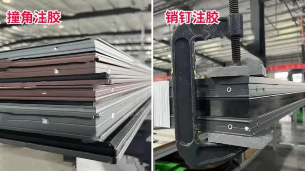 真正的系統(tǒng)窗,不管是窗框還是窗扇都必須采用注膠工藝,可以是撞角注膠,也可以是銷釘注膠,都是通過導(dǎo)流槽在角部注入組角膠。使組角更緊致、牢固,整扇窗戶的穩(wěn)定性、密封、隔音都會(huì)得到升級(jí)。沒有注膠的,都是假系統(tǒng)。